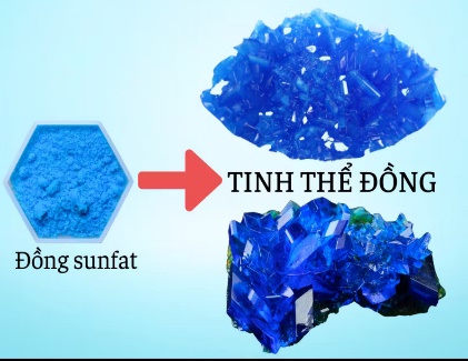 Đây là tinh thể đồng sunfat (CuSO₄) - một hóa chất thường được sử dụng trong các thí nghiệm khoa học ở trường học.