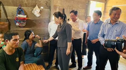 Phó Chủ tịch UBND thành phố Nguyễn Thị Anh Thi thăm gia đình có các cháu bị ngộ độc thực phẩm do ăn cá ủ chua