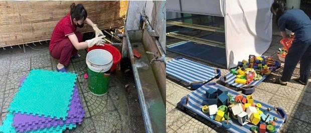 Để chủ động kiểm soát, không để dịch lây lan trong môi trường học đường, Khoa Kiểm soát bệnh tật & HIV/AIDS - Trung tâm Y tế khu vực Hòa Vang đã phối hợp với Trạm Y tế xã Bà Nà tổ chức giám sát, xử lý ổ dịch nhỏ tại Trường Mầm non Bình Minh, đồng thời mở rộng kiểm tra tại một số cơ sở mầm non, nhóm trẻ trên địa bàn. Với mục tiêu hạn chế thấp nhất số ca mắc, đoàn công tác đã trực tiếp hướng dẫn nhà trường triển khai các biện pháp vệ sinh, khử khuẩn theo quy định của Bộ Y tế. Cụ thể, sử dụng dung dịch Cloramin B 25% và các dung dịch sát khuẩn thông thường để vệ sinh bề mặt lớp học, sàn nhà, tay nắm cửa, đồ chơi và vật dụng cá nhân của trẻ; đảm bảo phòng học thông thoáng, có ánh nắng tự nhiên.
