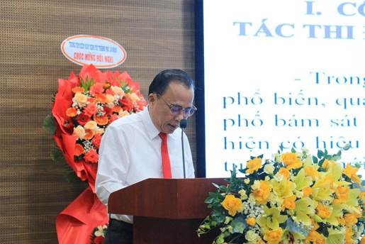 Ông Mai Văn Mười, Phó Giám đốc Sở Y tế báo cáo kết quả thực hiện phong trào thi đua yêu nước giái đoạn 2020-2025