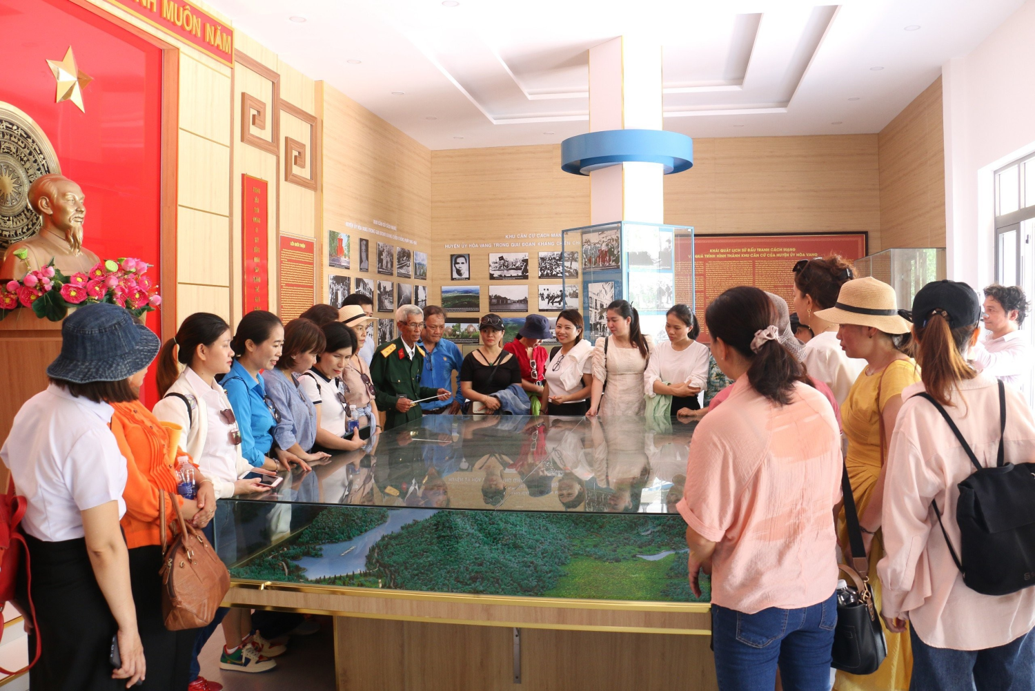 Xem hình tư liệu và nghe thuyết trình về khu căn cứ cách mạng